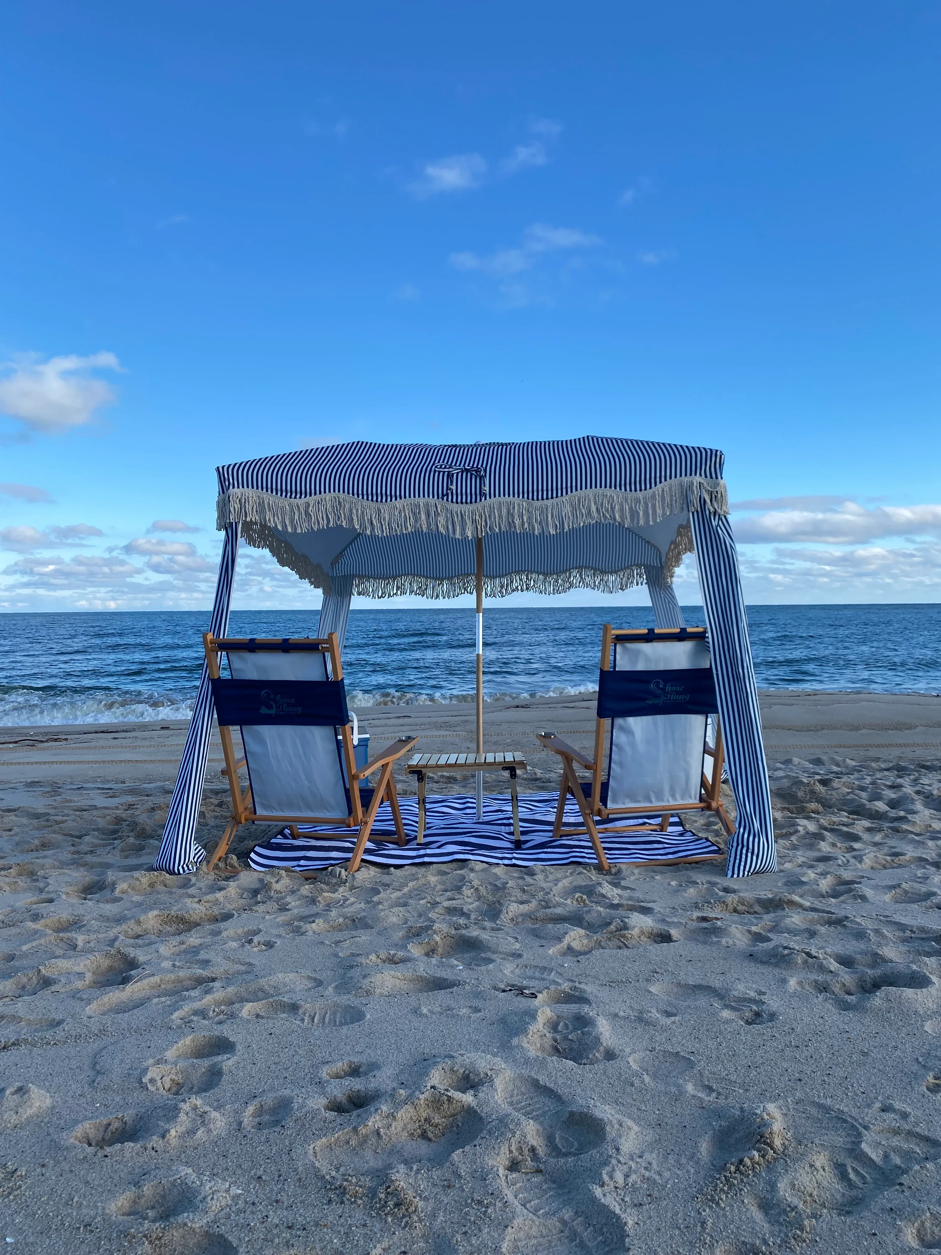 We set up early to reserve a prime location. You will be brought to the beach and a photo of your space will be provided. You will easily find your luxury oasis.